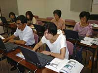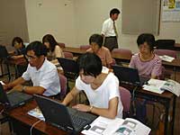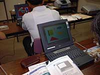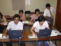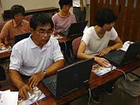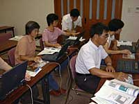 名張市すずらん台市民センターで行われている「IT講習会02年8月開催の模様」【戻る】